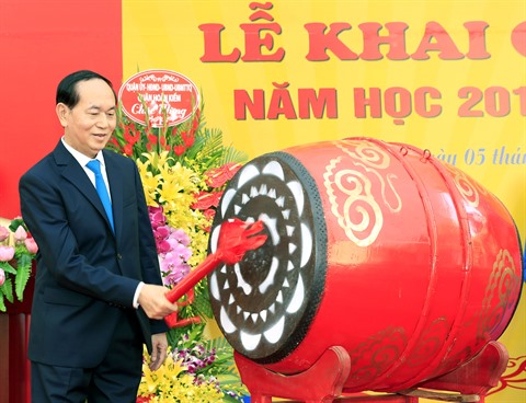 | Le président de la République, Trân Dai Quang, à la cérémonie d'ouverture de la nouvelle scolaire 2017-2018 du collège Trung Vuong de Hanoï. |