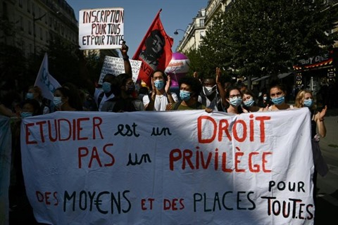 | Des étudiants participent à la manifestation du 17 septembre à Paris. |
