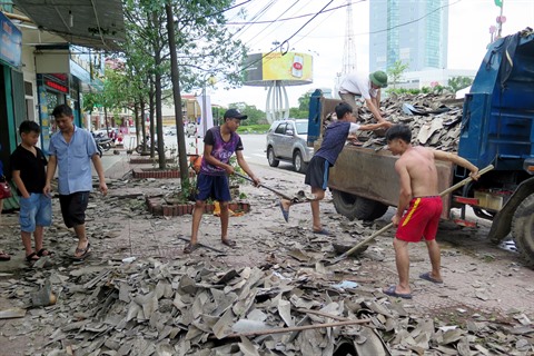 | Des habitants de Hà Tinh règlent les conséquences du typhon Talas. |