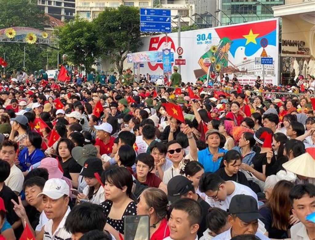 L'événement a débuté par un spectacle artistique de masse, comprenant un spectacle de tambours sur le thème "L'Épopée de la victoire totale" par l'Académie de police populaire, avec plus de 800 tambours de différents types ; une danse d'exercice au fusil sur le thème "La joie totale du pays" et des démonstrations artistiques de la Garde d'honneur militaire, ainsi que des performances d'artistes de Hô Chi Minh-Ville.