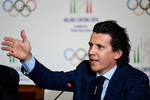 | Le directeur des Sports du CIO, Christophe Dubi, lors d'un point presse à Milan, le 6 avril 2019. |