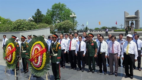 | Une délégation conduite par le vice-Premier ministre Truong Hoà Binh offre des bâtonnets d'encens en hommage aux héros morts pour la Patrie au cimetière de la nationale 9. |