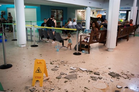 | Des voyageurs en attente d'évacuation à l'aéroport de Grand-Case, sur l'île de Saint-Martin, le 10 septembre. |