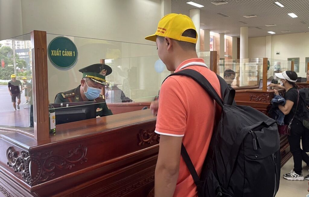 | Les touristes étrangers font des procédures d'immigration à la porte-frontière internationale de Mong Cai, province de Quang Ninh (Nord). |