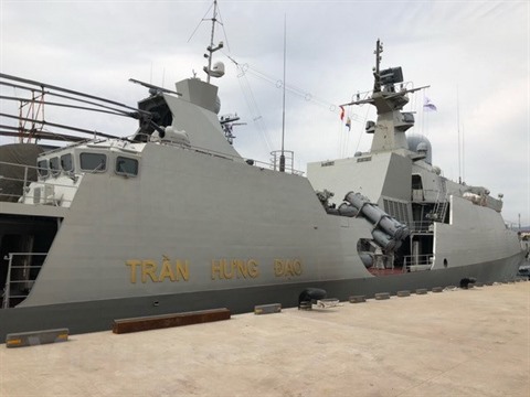 | La frégate de lutte anti-sous-marine 015-Trân Hung Dao de la Marine populaire vietnamienne participe à la revue internationale de la flotte à Jeju. |