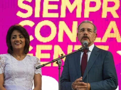 | Le président Danilo Medina et sa femme Candida Montilla le 16 mai à Saint-Domingue. |