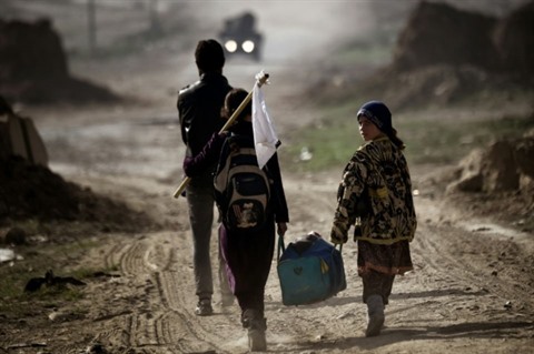 | Des Irakiens fuient Mossoul, le 1er mars. Photo : AFP/VNA/CVN |