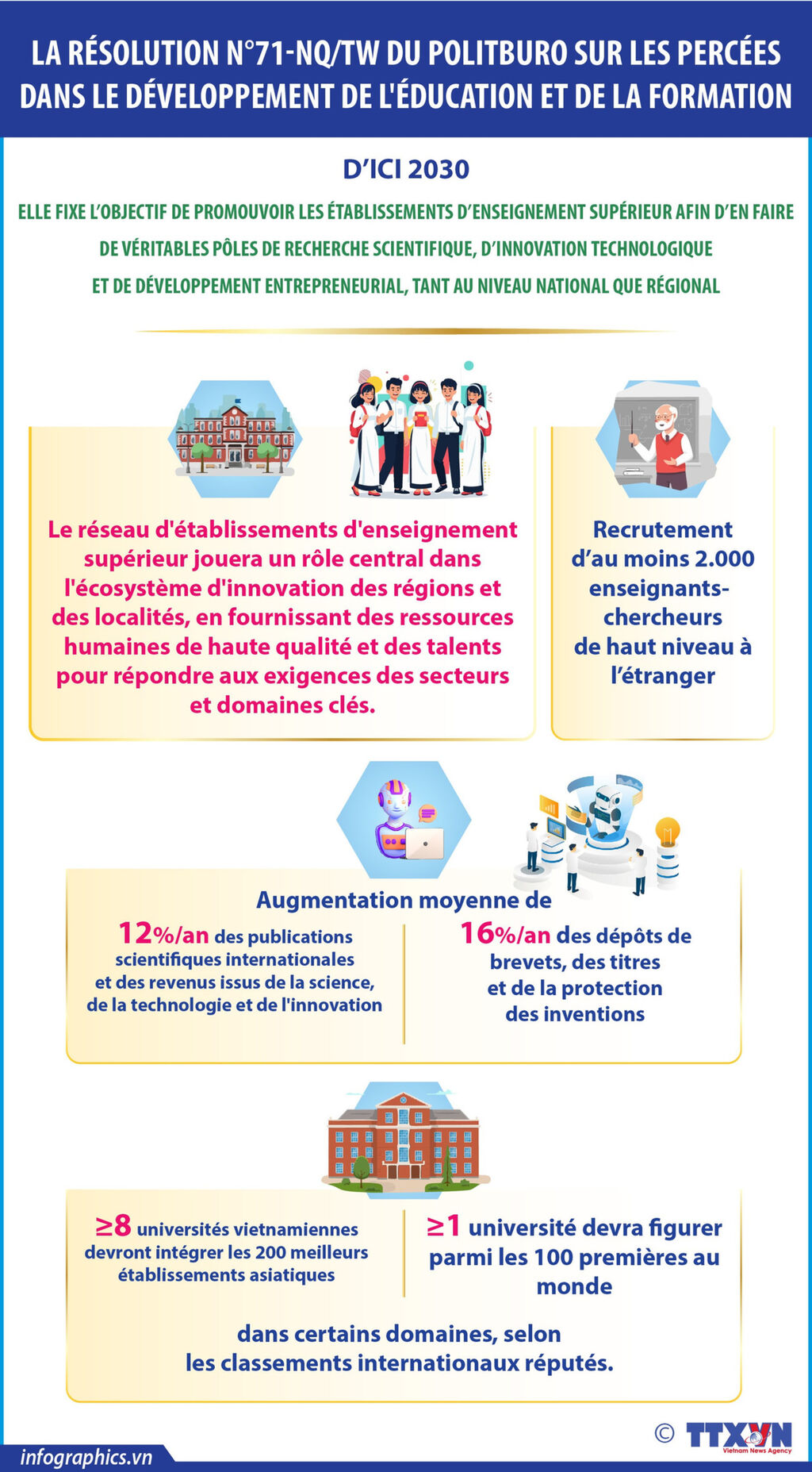 | La Résolution n°71-NQ/TW du Politburo sur les percées dans le développement de l'éducation et de la formation. |