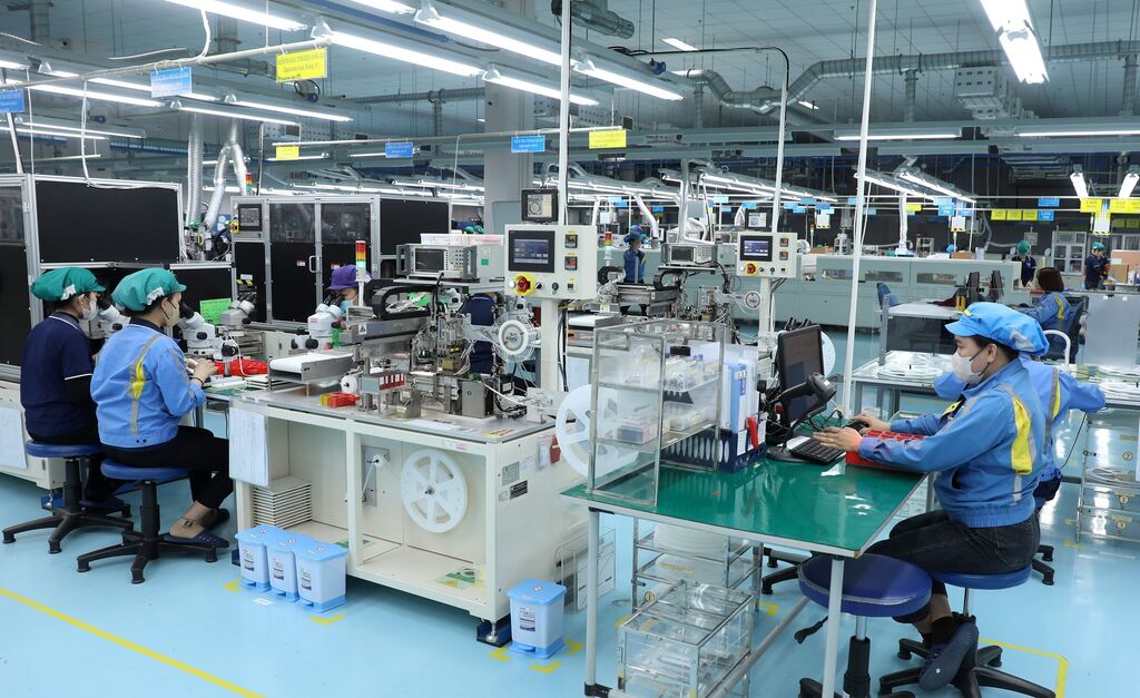 | Production de composants électroniques à la SARL Sumida (Japon) dans la zone industrielle de Tinh Phong, province de Quang Ngai (Centre). |