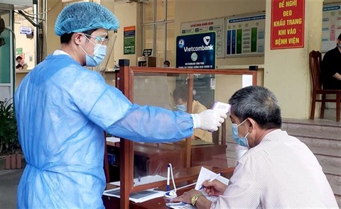 | Vérifier la température corporelle pour lutter contre le COVID-19 à Vinh Phuc (Nord). |