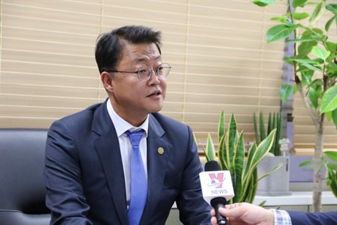 | Le Dr Lee Jaehyon lors d'une interview avec le journaliste de l'Agence Vietnamienne d'Information. Photo : Huu Tuyên/VNA/CVN |