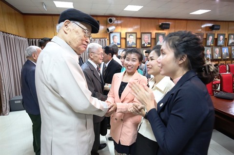 | Rencontre entre la délégation laotienne et les Vietnamiens qui avaient autrefois servi les feux présidents du Laos, Kaysone Phomvihane et Souphanouvong. |