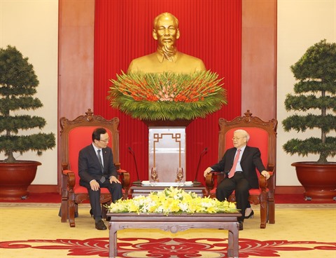 Le même jour, Trân Quôc Vuong, membre permanent du secrétariat du Comité central du PCV, s'est entretenu avec le président du PDC, Lee Hae-chan.