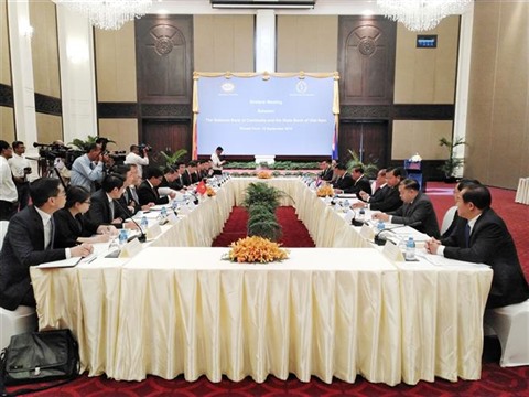 | La conférence entre la Banque nationale du Cambodge et la Banque d’État du Vietnam, le 16 septembre à Phnom Penh. |