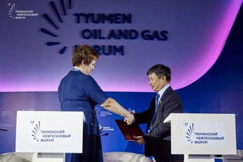| Des représentants de l’Institut du pétrole du Vietnam et de l’Université de l’industrie de Tyumen signent un mémorandum de coopération. |