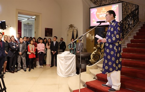 | L'ambassadeur du Vietnam en Belgique et chef de la délégation vietnamienne auprès de l'UE, Vu Anh Quang lors de la rencontre pour célébrer le Nouvel An lunaire le 8 février à Bruxelles. |