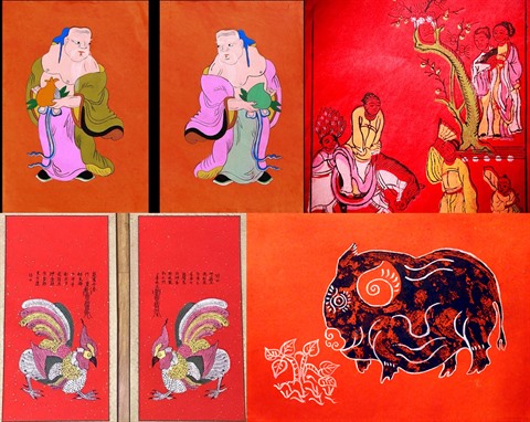 Comme toujours, ces images sont inspirées de la vie quotidienne des habitants du delta du fleuve Rouge. Le buffle, le bœuf, le cochon, le coq, les spectacles du village, du Têt y occupent une part prépondérante.