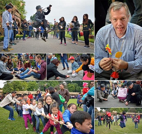 | Les habitants sont très enthousiastes avec les jeux populaires organisés sur l’esplanade de la statue Ly Thai Tô ou dans la rue piétonne. |