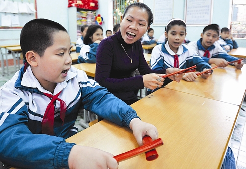 | Un cours de chant xoan à l’école primaire Tho Son, ville de Viêt Trì. |