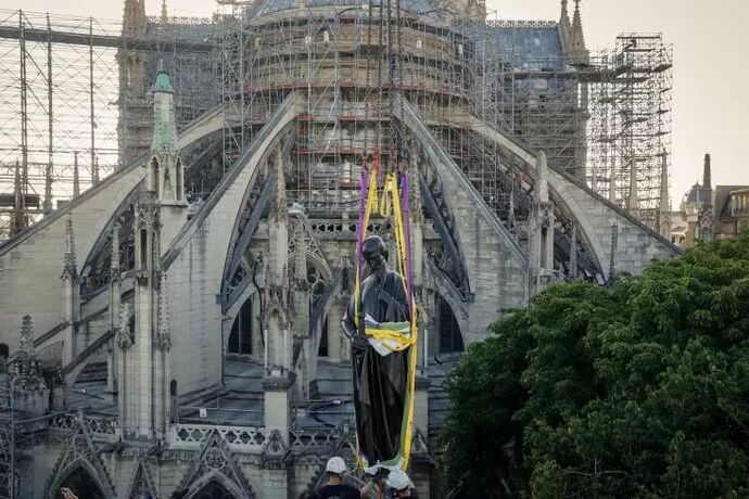 >> Réinstallation d'une première statue de la flèche de Notre-Dame