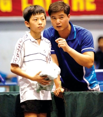 | Vu Manh Cuong (en bleu), le plus célèbre pongiste vietnamien. |