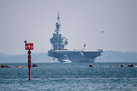 | Le porte-avions Charles-de-Gaulle accoste à Toulon le 12 avril. |