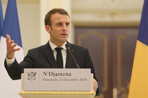| Le président français Emmanuel Macron, le 23 décembre, à N'Djamena au Tchad. |