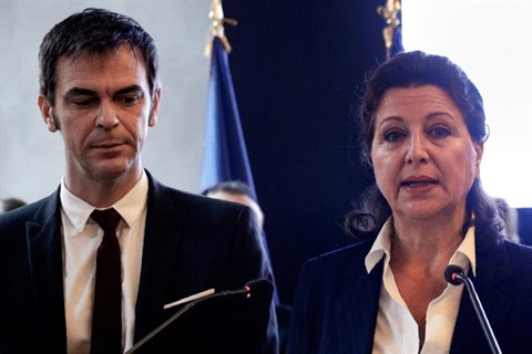 | Agnès Buzyn et son successeur Olivier Véran, lors de la passation de pouvoirs au ministère de la Santé le 17 février. |