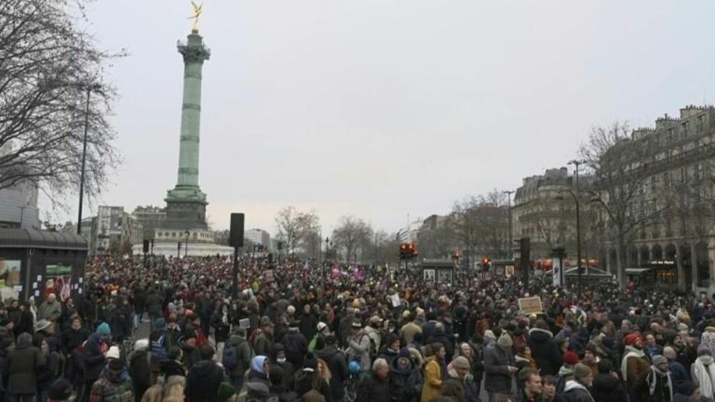 | La manifestation contre les retraites, à Paris, le 19 janvier. |