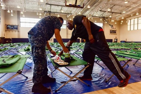 | Des employés de la base de Pearl Harbor vérifient les kits de premier secours, le 23 août à Hawaï. |