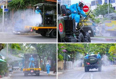 | La désinfection des rues à Dà Nang. |