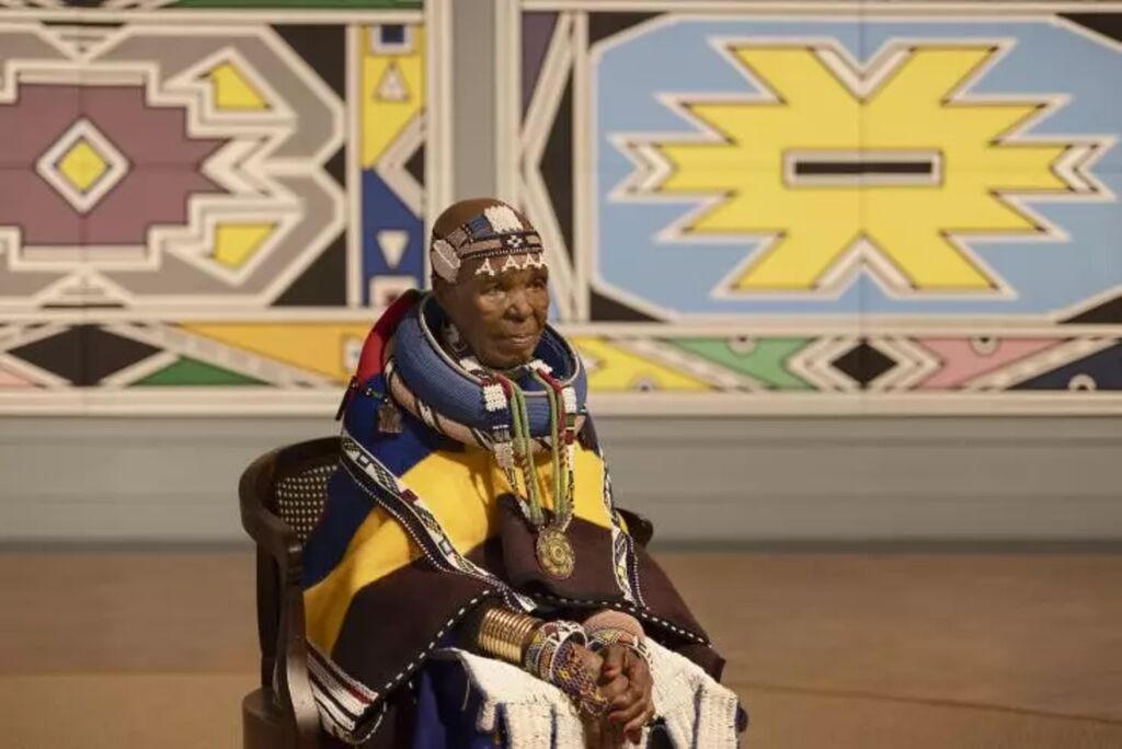Originaire de la province agricole et charbonnière du Mpumalanga (Nord-Est), Esther Mahlangu a appris les techniques ancestrales de la peinture murale dès l'âge de dix ans auprès de sa mère et sa grand-mère.