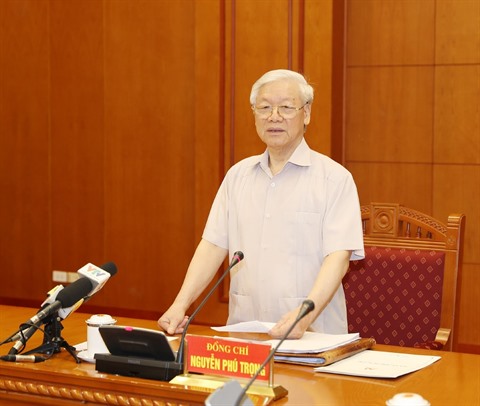 | Le secrétaire général du PCV, Nguyên Phu Trong, lors de la réunion sur la lutte contre la corruption, le 27 avril à Hanoï. |