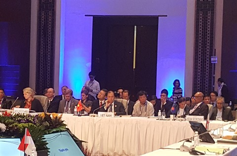 Présent à la réunion, le vice-ministre des Affaires étrangères Nguyên Quôc Dung, également chef du SOM ARF Vietnam, a réitéré la position du Vietnam sur la Mer Orientale qui promeut le règlement pacifique des différends selon le droit international. Il a également appelé les pays à faire preuve de retenue, à promouvoir la confiance et à chercher à prévenir les incidents en mer. Le vice-ministre a en outre salué les efforts pour appliquer rigoureusement la DOC et les résultats obtenus lors des discussions entre l’ASEAN et la Chine sur l’élaboration du COC.