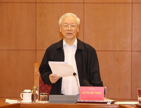 | Le secrétaire général du PCV et président Nguyên Phu Trong, lors de la réunion du Comité de la direction de la prévention et de la lutte contre la corruption. |