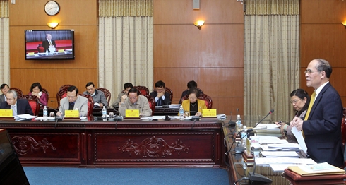 | Le Comité de rédaction pour la révision de la Constitution de 1992 en réunion le 13 mars à Hanoi. |