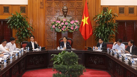 | Le vice-Premier ministre Vu Duc Dam (centre) à la réunion du Conseil national pour le développement durable et l’amélioration de la compétitivité, le 7 mars à Hanoï |