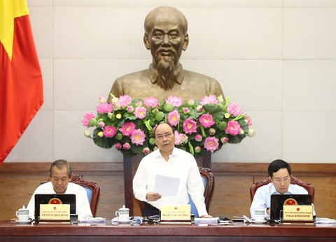 | Le Premier ministre Nguyên Xuân Phuc s'exprime lors de la réunion périodique d'août du gouvernement, le 30 août à Hanoï. |