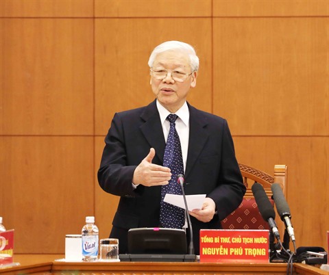 | Le secrétaire général du PCV et président vietnamien Nguyên Phu Trong prend la parole lors de la réunion. |