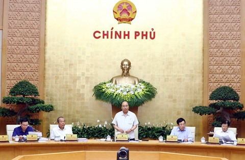 | Le Premier ministre Nguyên Xuân Phuc (debout) préside la réunion périodique du gouvernement, le 4 mai à Hanoï. |