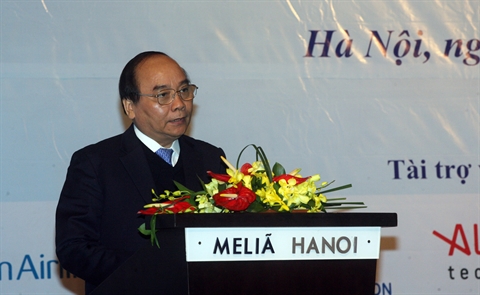 | Le vice-Premier ministre Nguyên Xuân Phuc prend la parole lors de la 3e réunion sur la sécurité du transport du Vietnam en 2015, tenue le 26 novembre à Hanoi. |