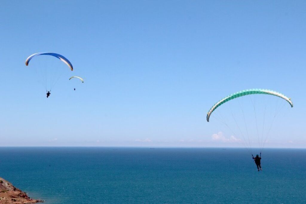 | Avec le parapente, les joueurs ont la chance d’admirer les magnifiques paysages des montagnes et de la mer de Dà Nang. |