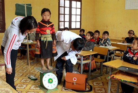 | Soins de santé donnés aux élèves d'une école primaire de la province de Son La (Nord). |