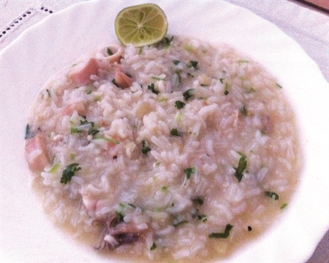 La recette du risotto vietnamien aux calamars est un plat léger à base de riz que les Vietnamiens préparent lorsque l’estomac a été «sollicité» (lendemains de fête, par exemple). Son nom original est Chao muc, ou Chao theo, qui signifie littéralement «soupe de riz au calamar».