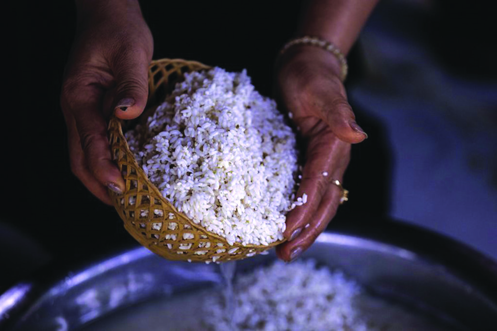 | Le "xôi" (riz gluant cuit à la vapeur) constitue l’âme de la fête du nouveau riz. |