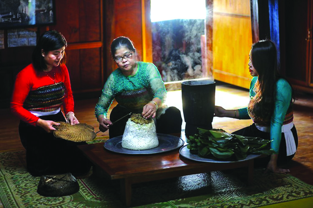 À l’issue du rituel, tous savourent le ruou cân (alcool), le xôi, le poisson de ruisseau et se joignent aux danses xòe et sap animées, créant une ambiance chaleureuse et solidaire. Le rituel du nouveau riz n’est pas seulement une pratique spirituelle : il constitue un patrimoine culturel durable, soigneusement transmis comme une composante essentielle de la vie spirituelle des Thai de Mai Châu.
