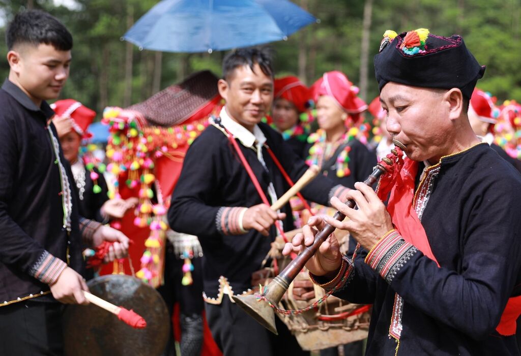La cérémonie d’accueil de la mariée est une vraie fête musicale. Le cortège du marié se compose d’un groupe de quatre musiciens avec des hautbois, des tambours et des gongs qui résonnent pour annoncer et célébrer l’union auprès des ancêtres et des esprits de la nature.
