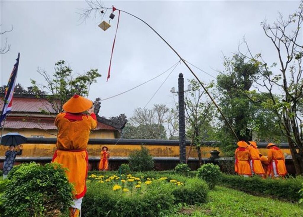 Le Centre de conservation des monuments de Huê a organisé le 28 janvier (soit le 7e jour du 1er mois lunaire) la cérémonie de démontage du cây nêu - mât rituel du Têt - et celle d’ouverture des sceaux au palais royal de Huê à Triêu Miêu et Thê Miêu (lieux de cultes pour les dignitaires) appartenant à la zone patrimoniale du palais impérial de Huê.