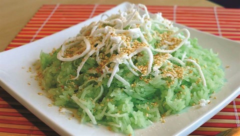 Voilà, maintenant, vous pouvez déguster votre xôi dua avec votre famille. Le xôi dua est un plat original et doux. Durant les jours fériés, vous pouvez le préparer pour mettre un peu d’exotisme !