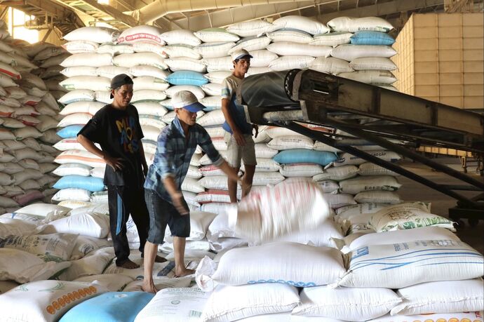 | Emballage de riz à l'usine du groupe Lôc Troi (province d'An Giang). |
